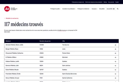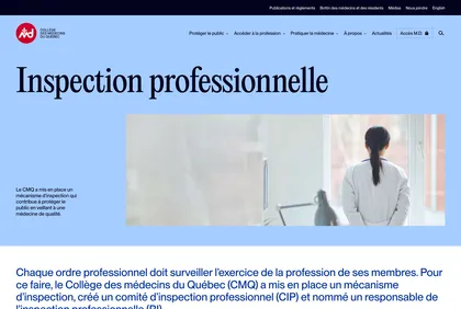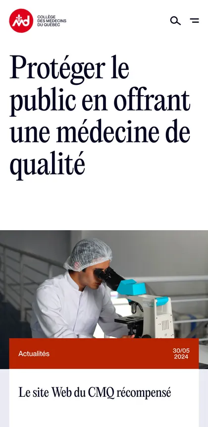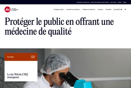 Site du Collège des Médecins du Québec, conçu pour informer et orienter les professionnels de la santé et le public. L’expérience utilisateur met l’accent sur l’accessibilité, la clarté des contenus et un outil efficace de recherche de médecin.